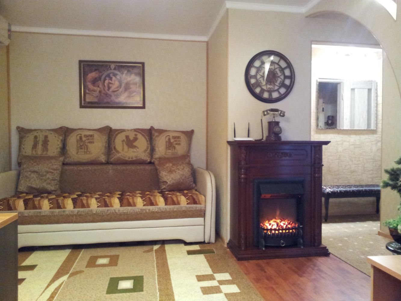 Полное оснащение мебелью и бытовой техникой. В квартире: ЖК ТВ, DVD, СВЧ, утюг, фен и прочие мелочи из которых состоит комфорт.